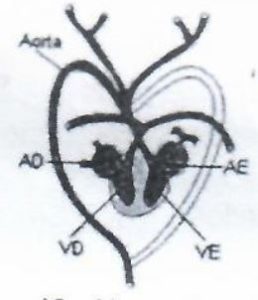 Explicação: A figura apresenta rins, ureteres e cloaca, estruturas típicas do sistema urinário dos répteis. Esses animais excretam principalmente ácido úrico. O coração humano e o sistema circulatório das aves apresentam estruturas diferentes. A circulação dupla incompleta refere-se a anfíbios e répteis, mas não corresponde à figura. Portanto, trata-se do sistema urinário de répteis.